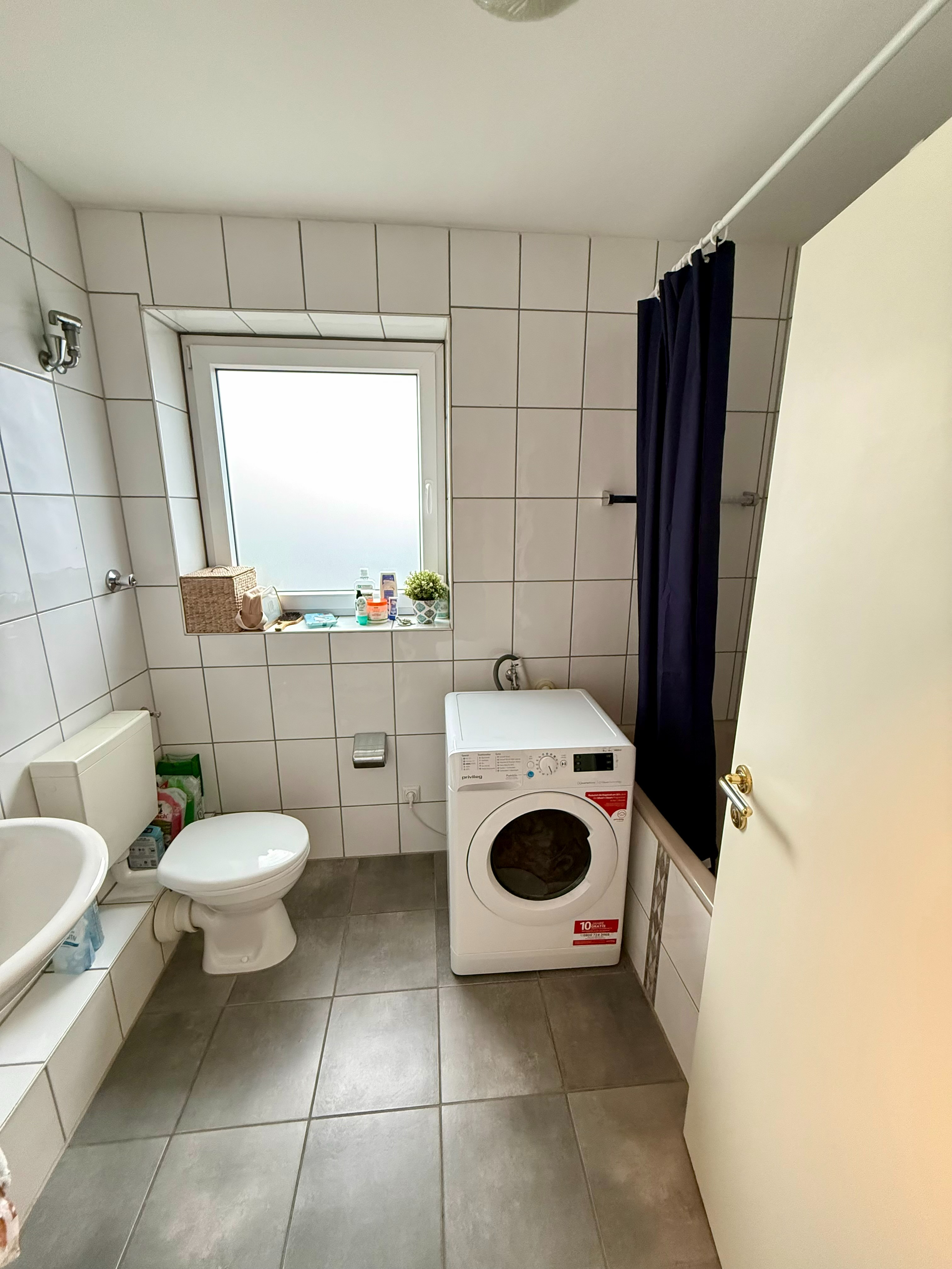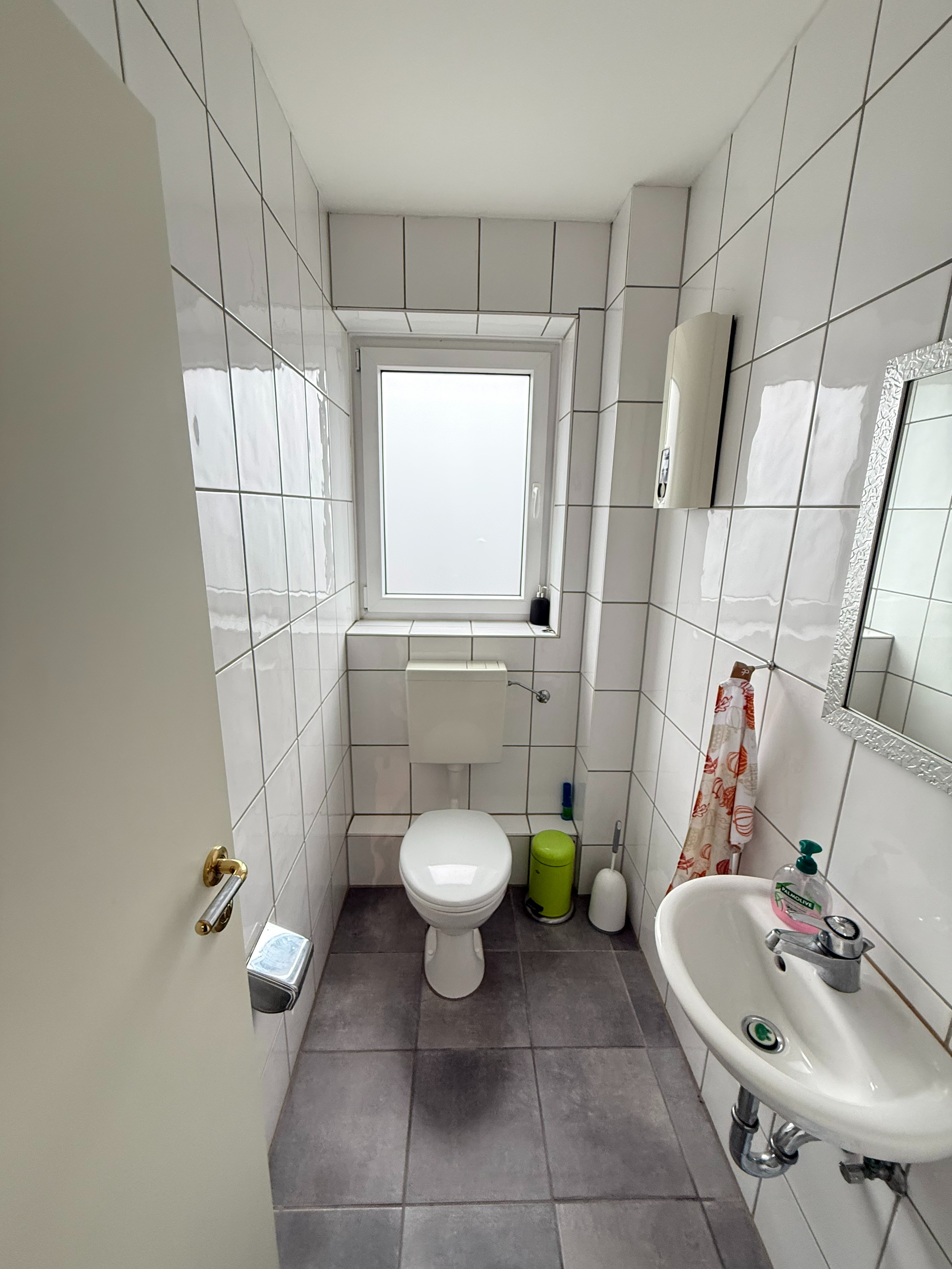 Das Badezimmer mit Fenster ist mit einer Badewanne ausgestattet und bietet angenehmes Tageslicht sowie gute Belüftungsmöglichkeiten. Ergänzt wird das Raumangebot durch ein separates Gäste-WC, was den Wohnkomfort deutlich erhöht.