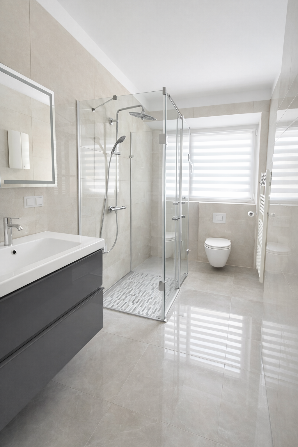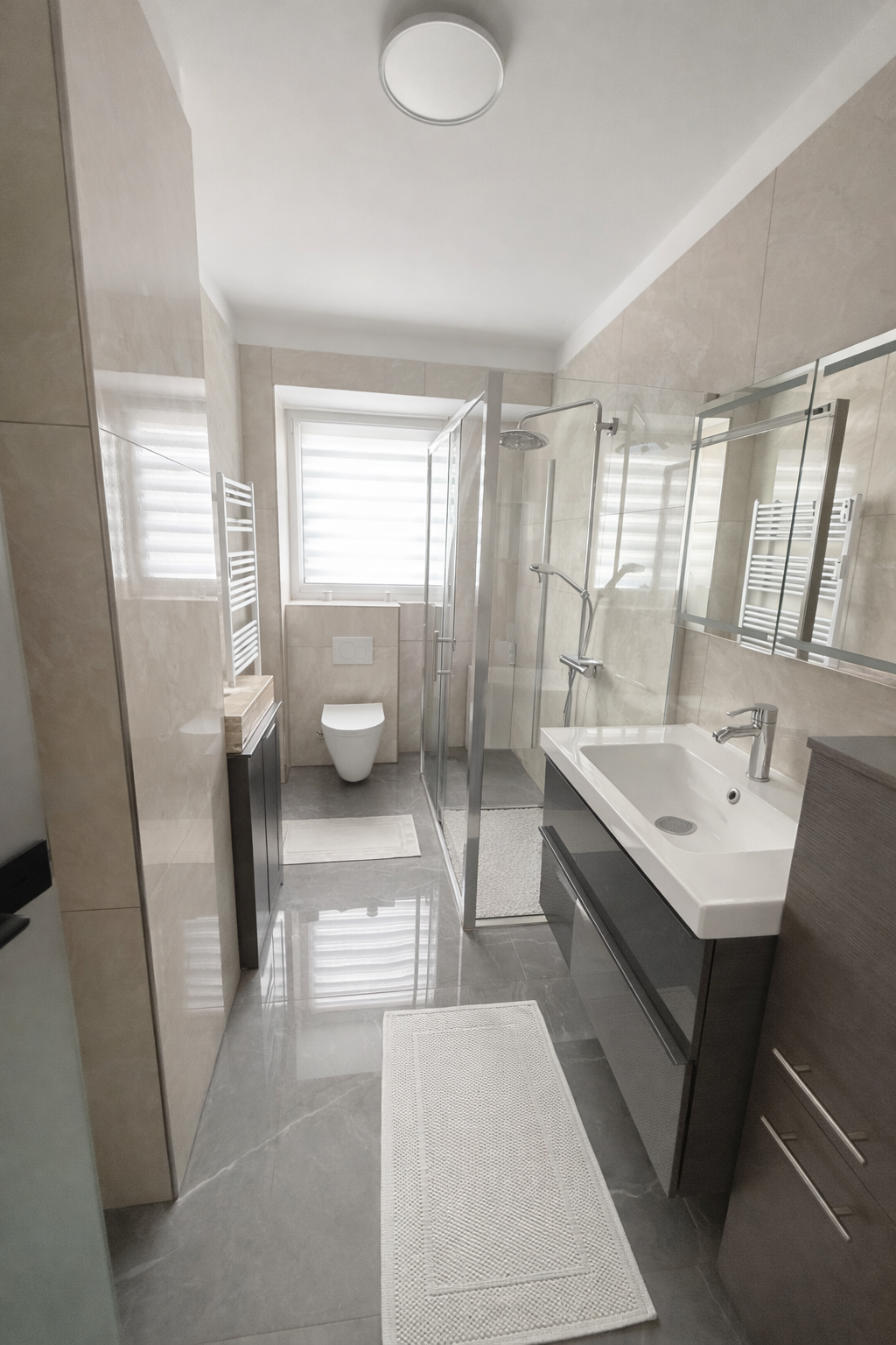 - Ausstattung des Bades Dusche Fenster
