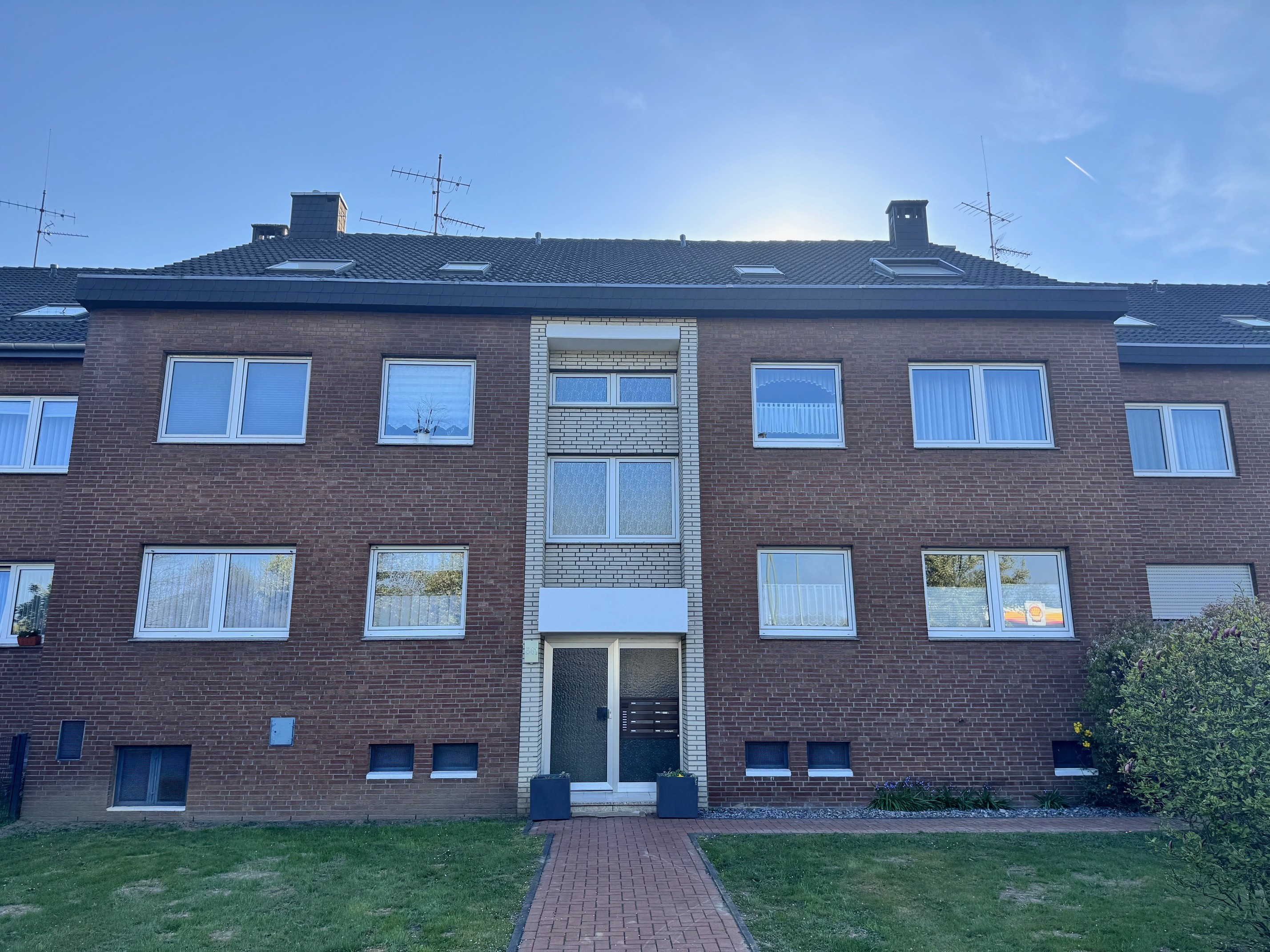 Die Wohnung liegt etwas zurückgelegen auf der Friedrich-Ebert-Straße in Duisburg Walsum direkt an der Grenze zu Dinslaken. Vor dem Haus befinden sich die Stellplätze. Nach hinten raus blicken Sie ins Grüne. Die Auffahrt zur A59 ist ganz in der Nähe, so dass die Anbindung an die wichtigen Autobahnen des Ruhrgebiets als hervorragend einzustufen ist.