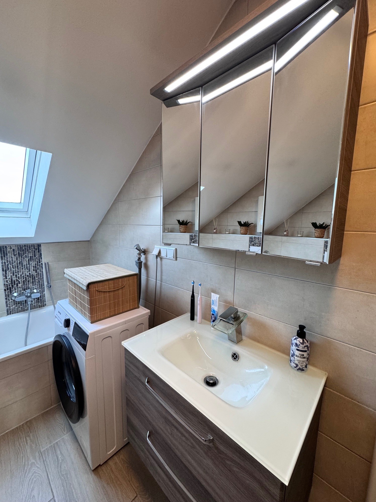 - Ausstattung des Bades Badewanne Dusche Fenster