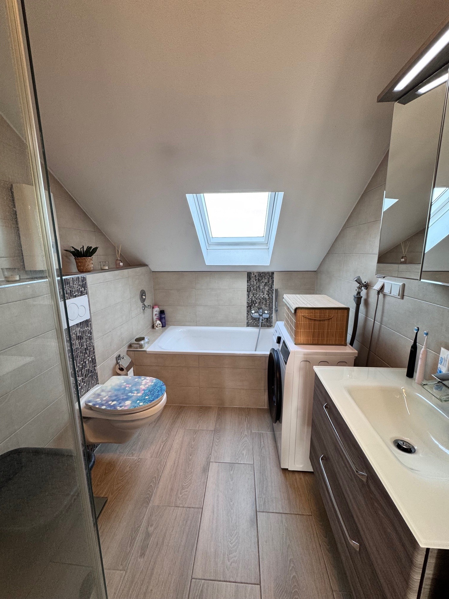 Modernes Tageslichtbad mit Wanne und Dusche