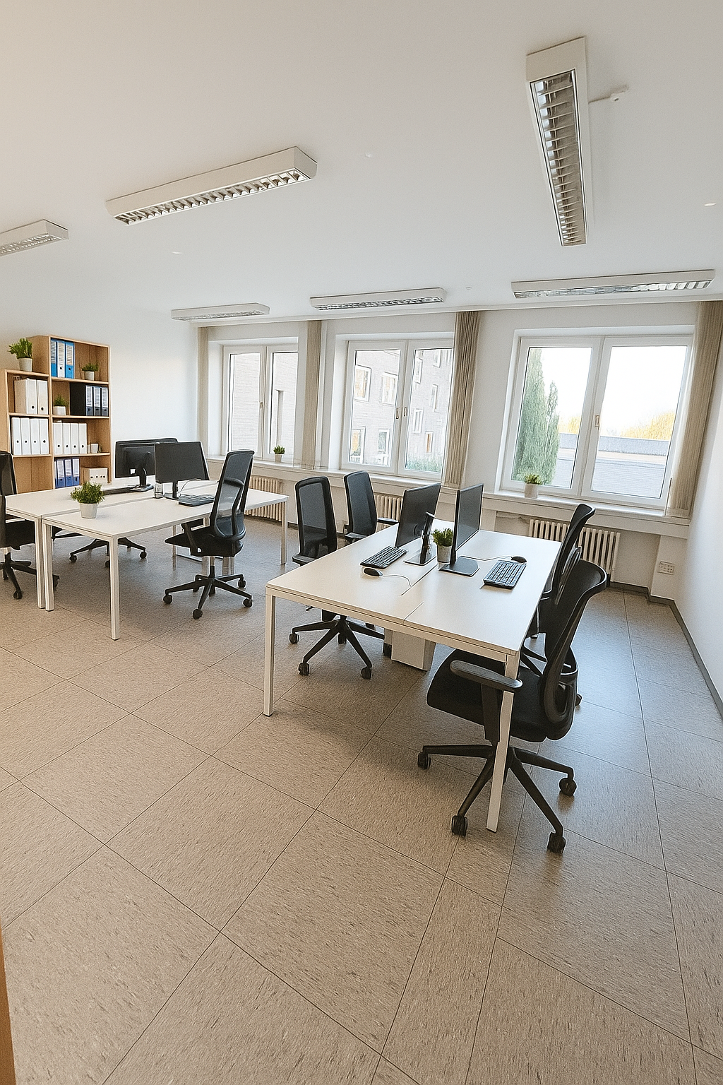 Ob Büro, Praxis, Schulungsräume, Produktion, Atelier, Lager oder Kombinationen daraus – hier ist nahezu alles realisierbar. Die großzügige Raumaufteilung ermöglicht individuelle Gestaltung und Anpassung an Ihre betrieblichen Anforderungen.